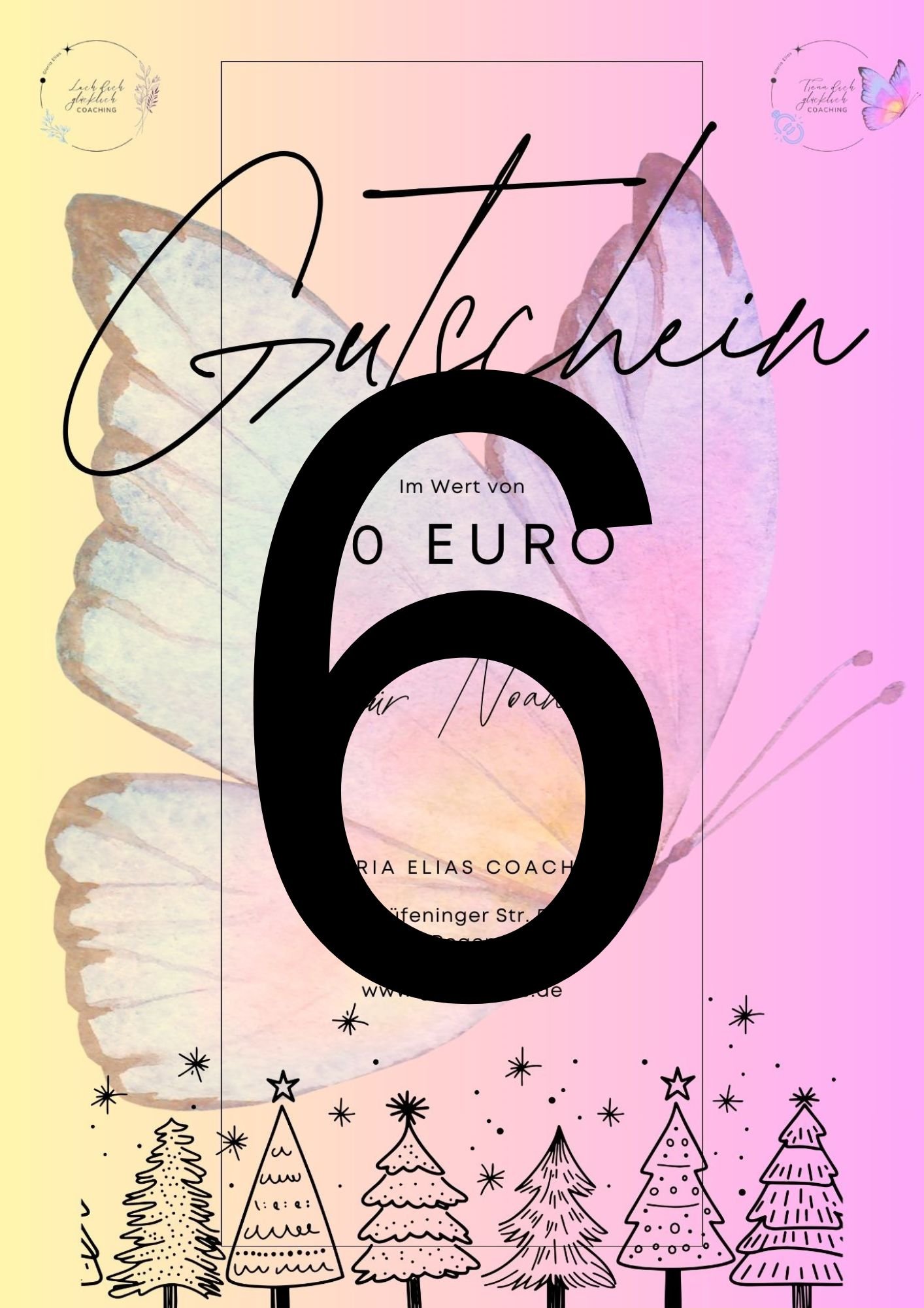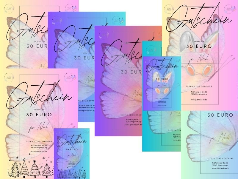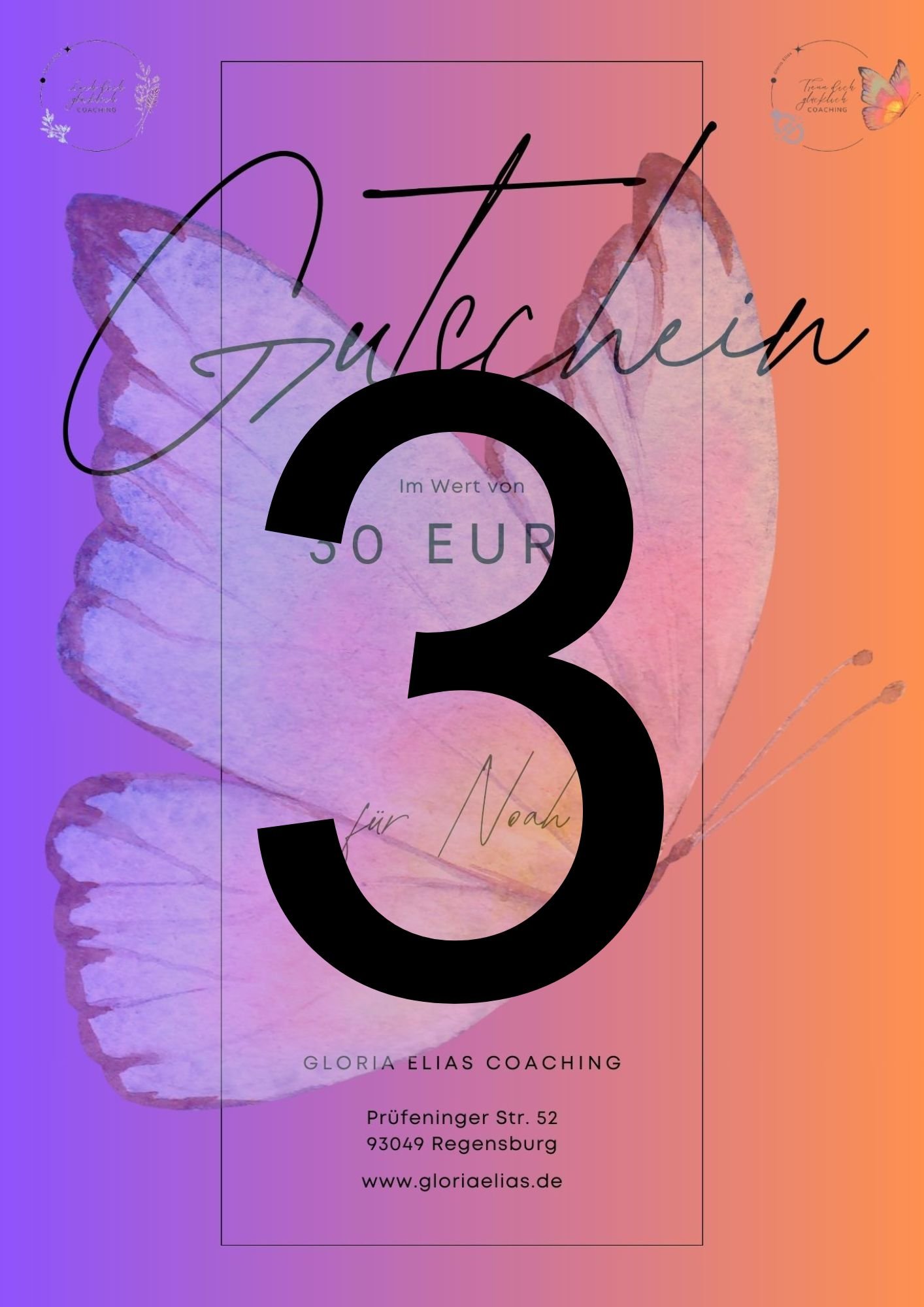 Der Gutschein wird individuell gestaltet (Name, Wunschtext & Farbe) und als PDF per E-Mail versendet – ideal zum sofortigen Verschenken oder Ausdrucken.